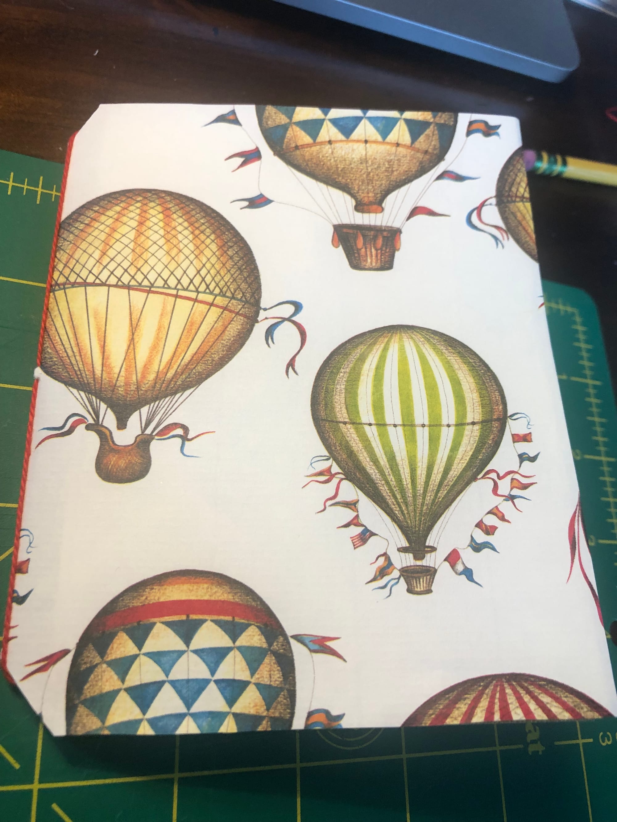 So I signed up for another class, this one about making travel journals. This one appealed to me, a. because I have a trip coming up next month, and b. because the lessons involved creating books of different sizes, with pockets and doo-dads (not a technical bookmaking term) that allow you to keep ticket stubs, menus, photos and the like. You can make the covers clean and simple and embellish them later. Or, you can dig into your brand new paper stash from Hollander's and make a cute cover with vintage hot air balloons.