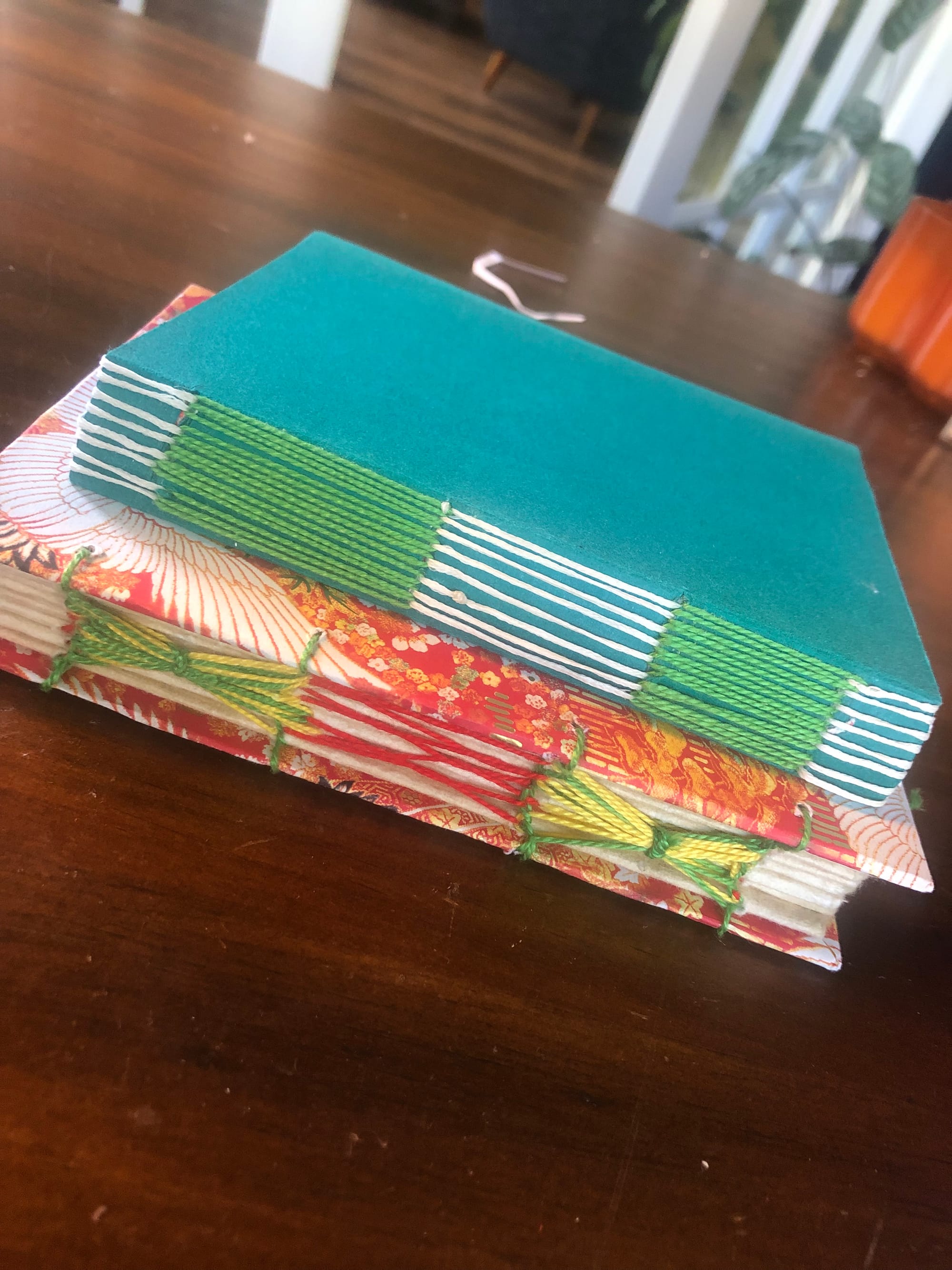 As I've mentioned before, I've been learning bookbinding with some virtual classes and by tinkering around with a bunch of paper on my own. Why? I've always been a notebook geek, and when my kid started making do-it-yourself sketchbooks a year or so ago, it sparked a little something in me. I go through notebooks like it's not even funny. So why not make my own, with stuff I like that suits my scribbles and brainstorms?