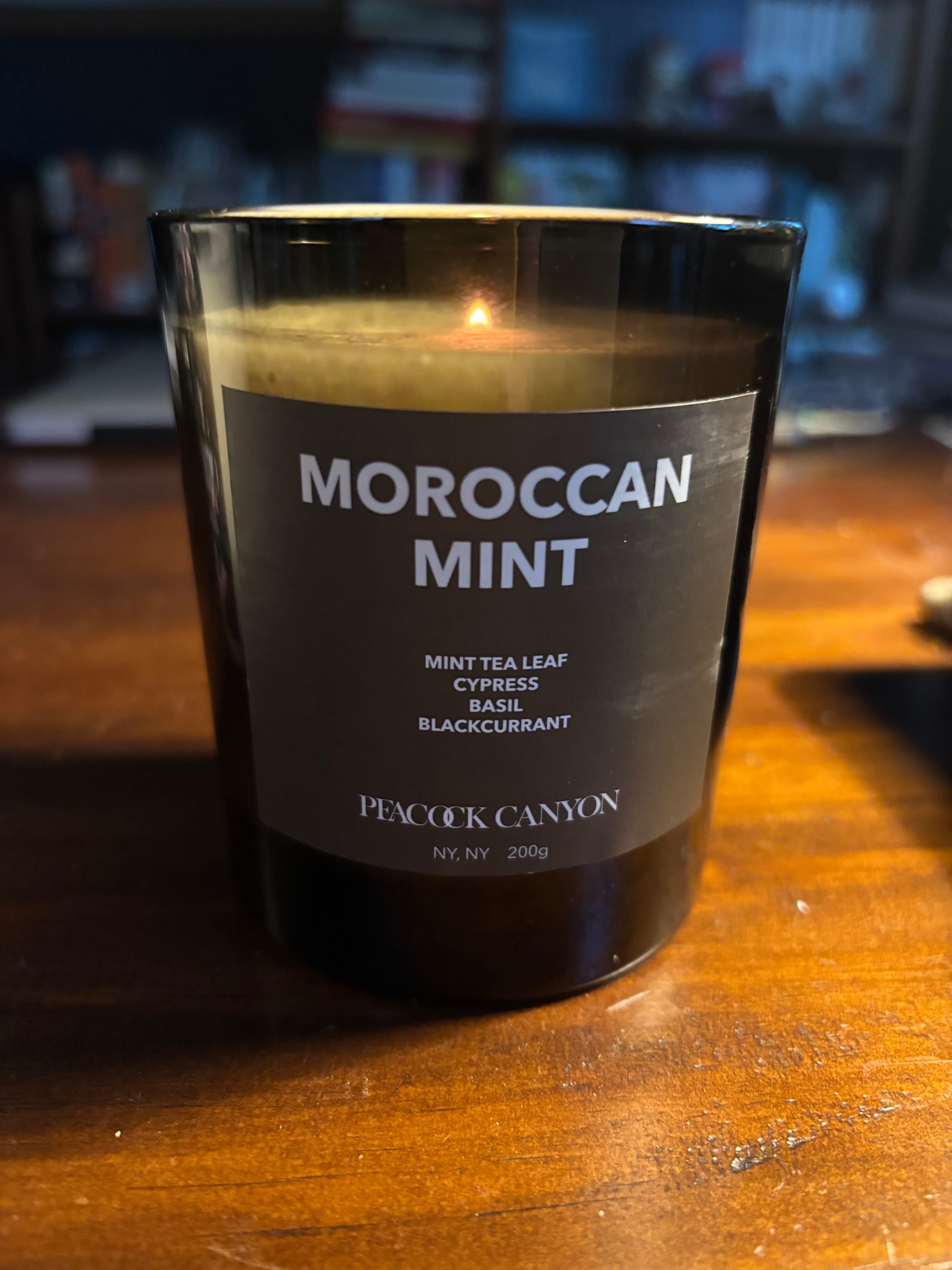 This Moroccan Mint candle, which somehow manages to be uplifting and soothing. Now my office smells like a nerd spa.