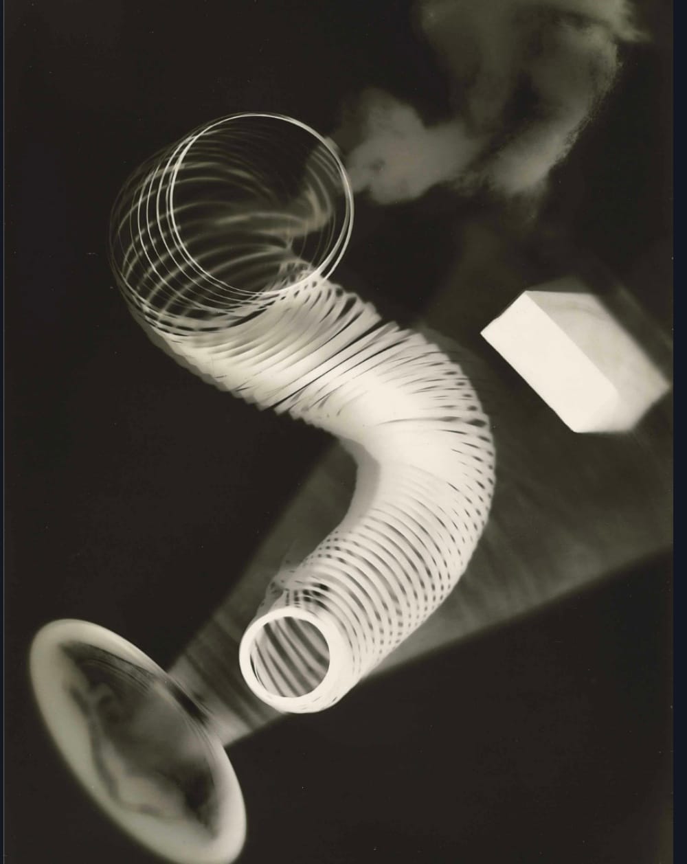 Man Ray didn't invent the rayograph – or photogram – but he did kind of make it his own. The process involves putting ordinary objects (like a spring) onto light sensitive paper and then exposing them to light. The light areas on the print are where the objects have touched the paper and prevented light from exposing the paper. By controlling the exposure of the picture and moving or removing objects, he created images that were unusual and elegant all at once.